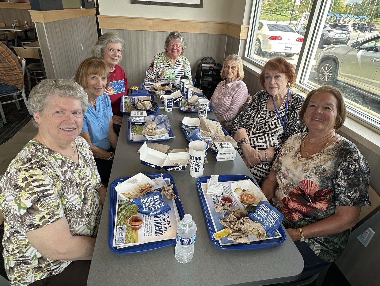 L-R: Jennifer Frame Dawson, Jean Norris, Betty Wiest Williams, Anne Cooper Abbatiello, Ann Carey Abbott, Judy McCown Russell, Ann Carey Abbott's sister-in-law Evelyn, Jeanne Culver Thorpe, Jean Pemberton McIntyre, Cheryl Loudermilk Kear, Becky Roller Barton